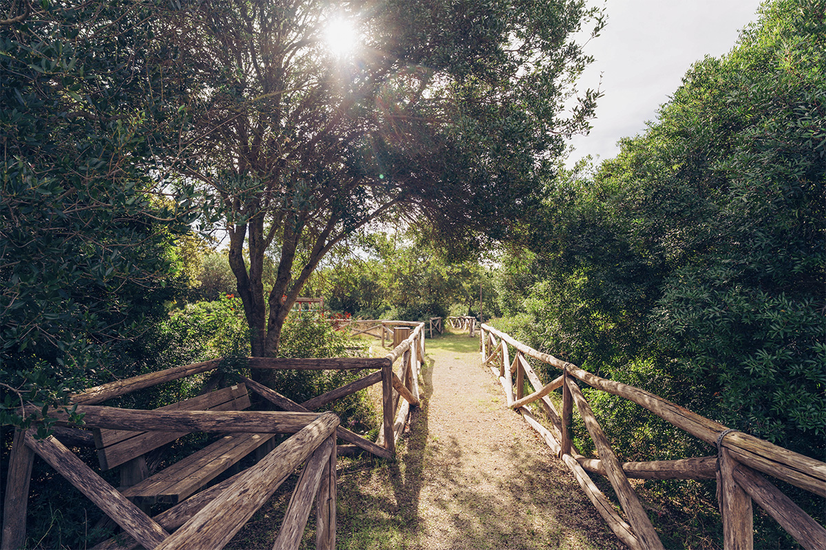 Inoltrati nel Bosco del Benessere, in un percorso di salute adatto a tutti che si snoda tra lecci e pini. Nella tua passeggiata, troverai opere artistiche per rigenerare, oltre al corpo, anche la tua anima.