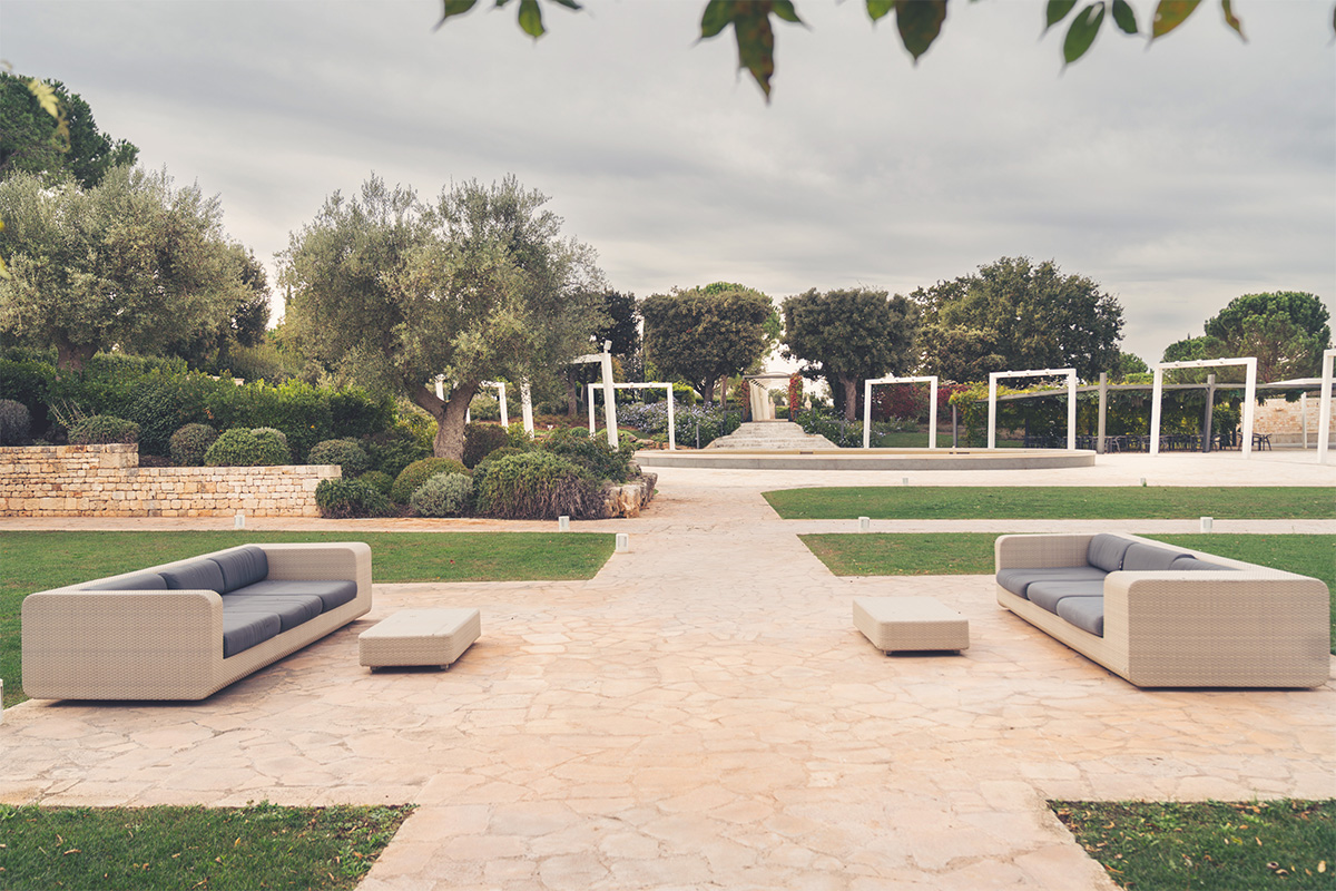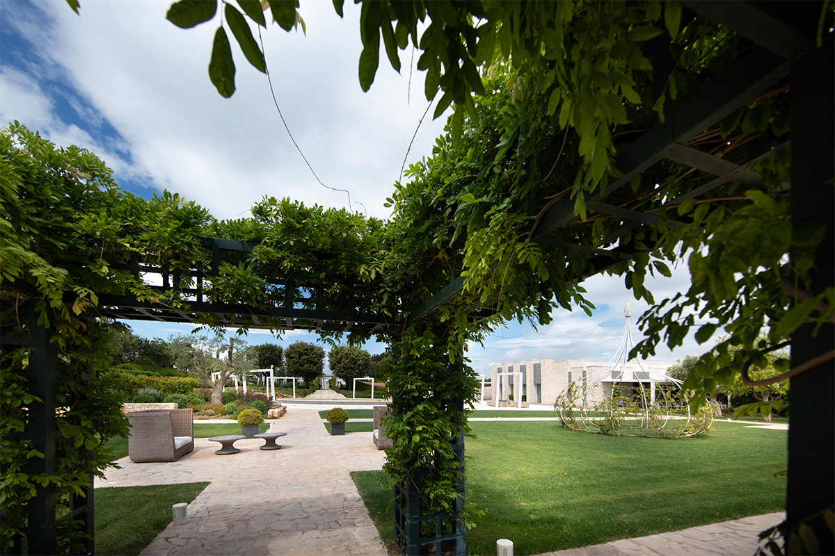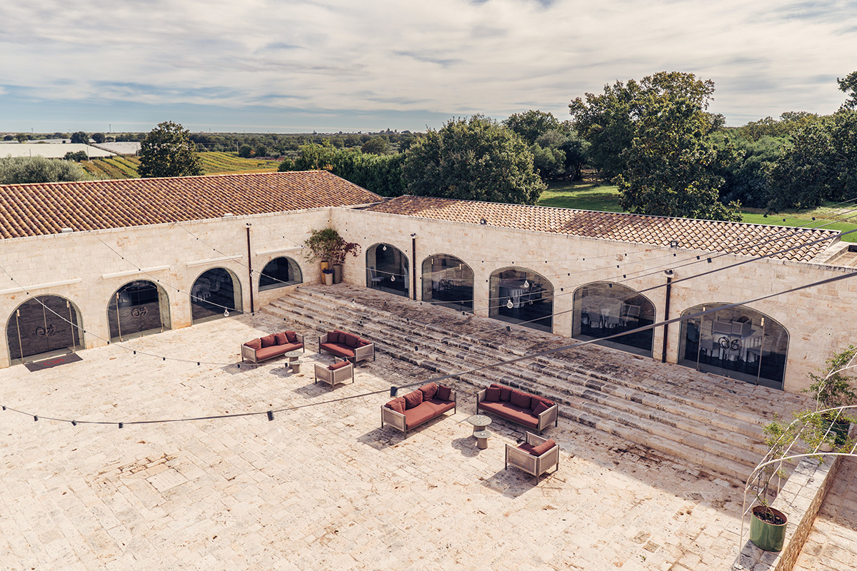 Il cuore tradizionale del nostro Relais, con la splendida corte circondata da sale antiche in grezza pietra nuda. Qui l'eleganza non tramonta mai e vive in un bianco senza tempo, simbolo di amore e purezza.