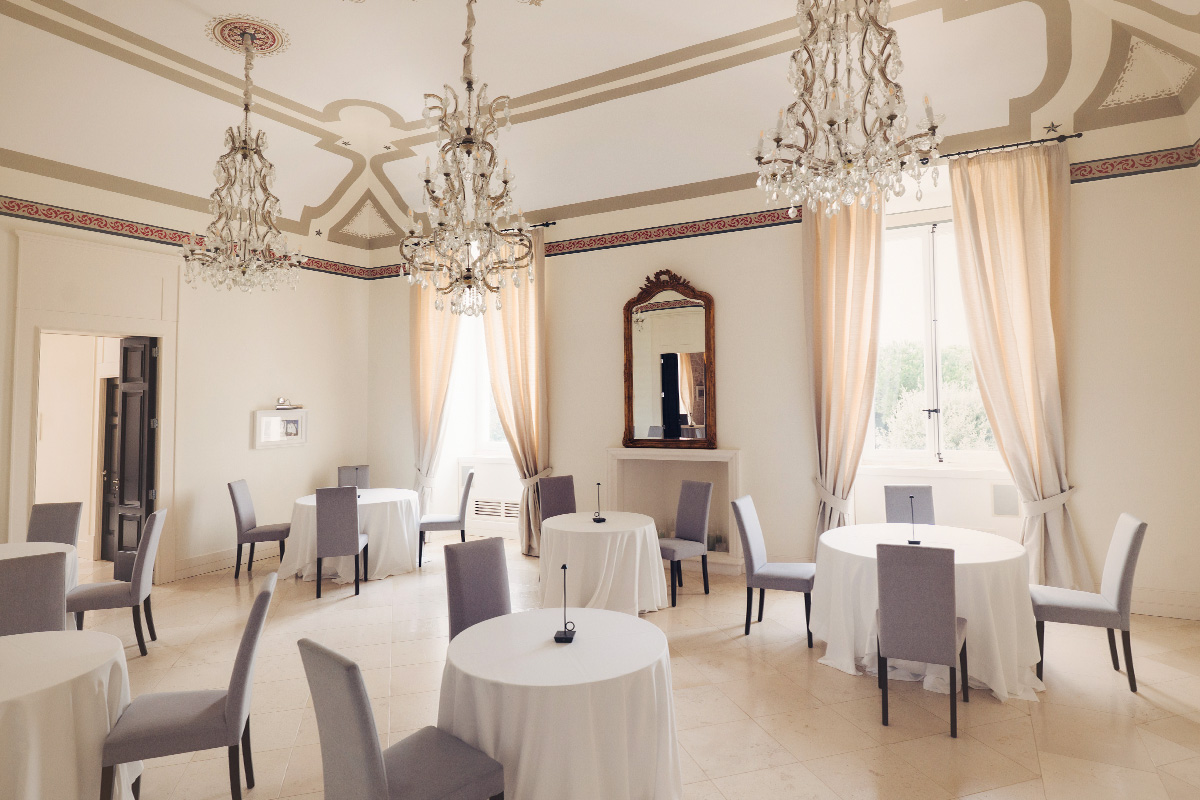 Dimora dei nobili proprietari di un tempo, le sale del Palazzo raccontano una storia di eleganza. Soffitti alti, affreschi, libri antichi e arredi d’epoca. Ogni dettaglio parla di memoria e classicità.