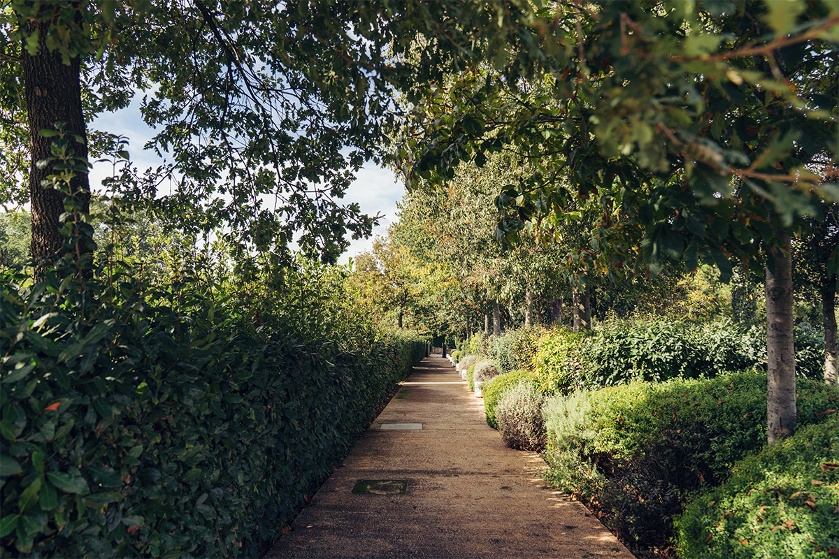 Pini marittimi svettano all’orizzonte, accompagnando i vostri passi in un viaggio sempre nuovo tra vialetti e prati curati. L’ombroso boschetto vi aspetta con il suo percorso di salute, tra piante autoctone e opere d’arte locali.